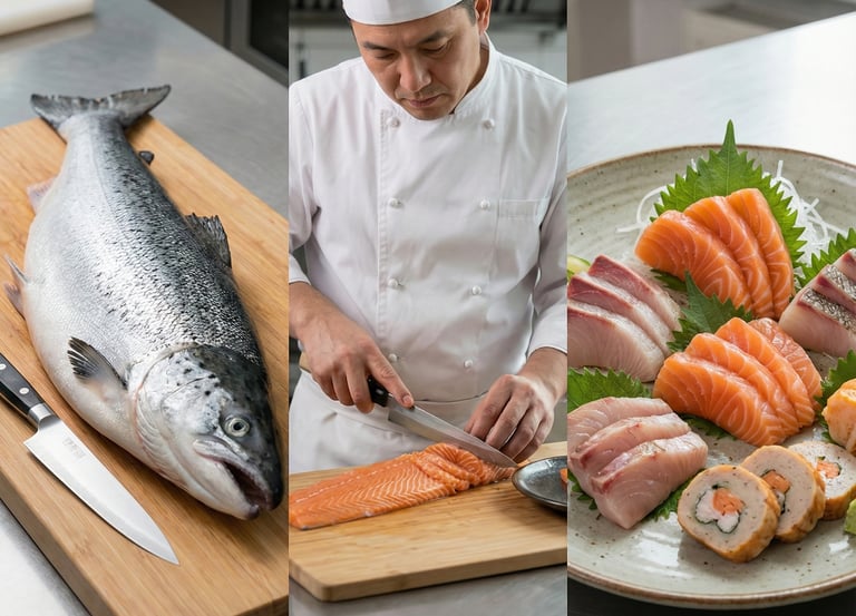 Emme vain leikkaa kalaa; me jalostamme sen uudelle tasolle. Tiimimme hyödyntää aitoja, kokkitasoisia tekniikoita muuttaakseen raaka-aineet tarkasti valmistetuiksi, käyttövalmiiksi tuotteiksi. Olipa kyseessä hienovaraiset sashimisiivut tai tietyt teolliset leikkaukset, tarjoamme aitoa laatua, jota todelliset ammattilaiset vaativat.